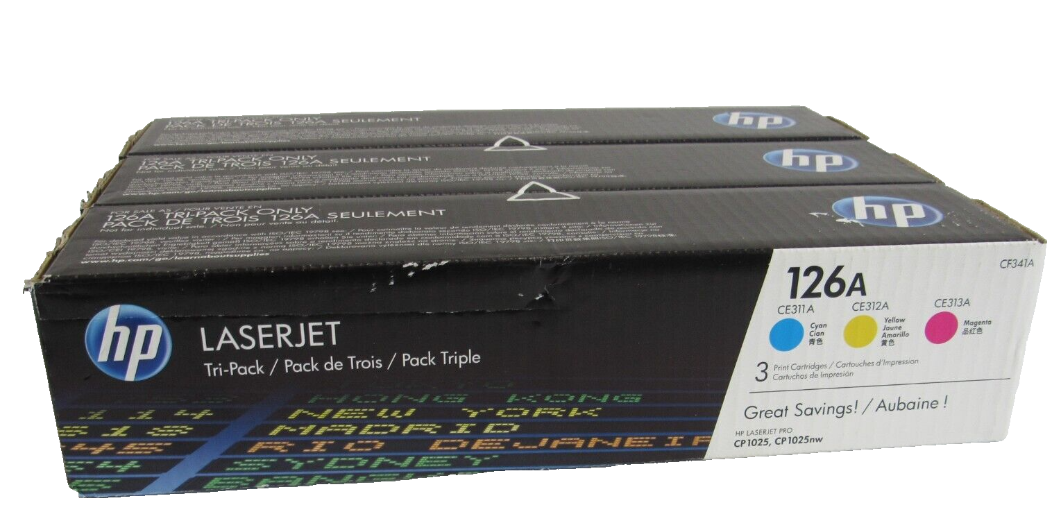 NEW SEALED LOT OF 3 HP 126A LASERJET INK CARTRIDGES CYAN, YELLOW, MAGENTA