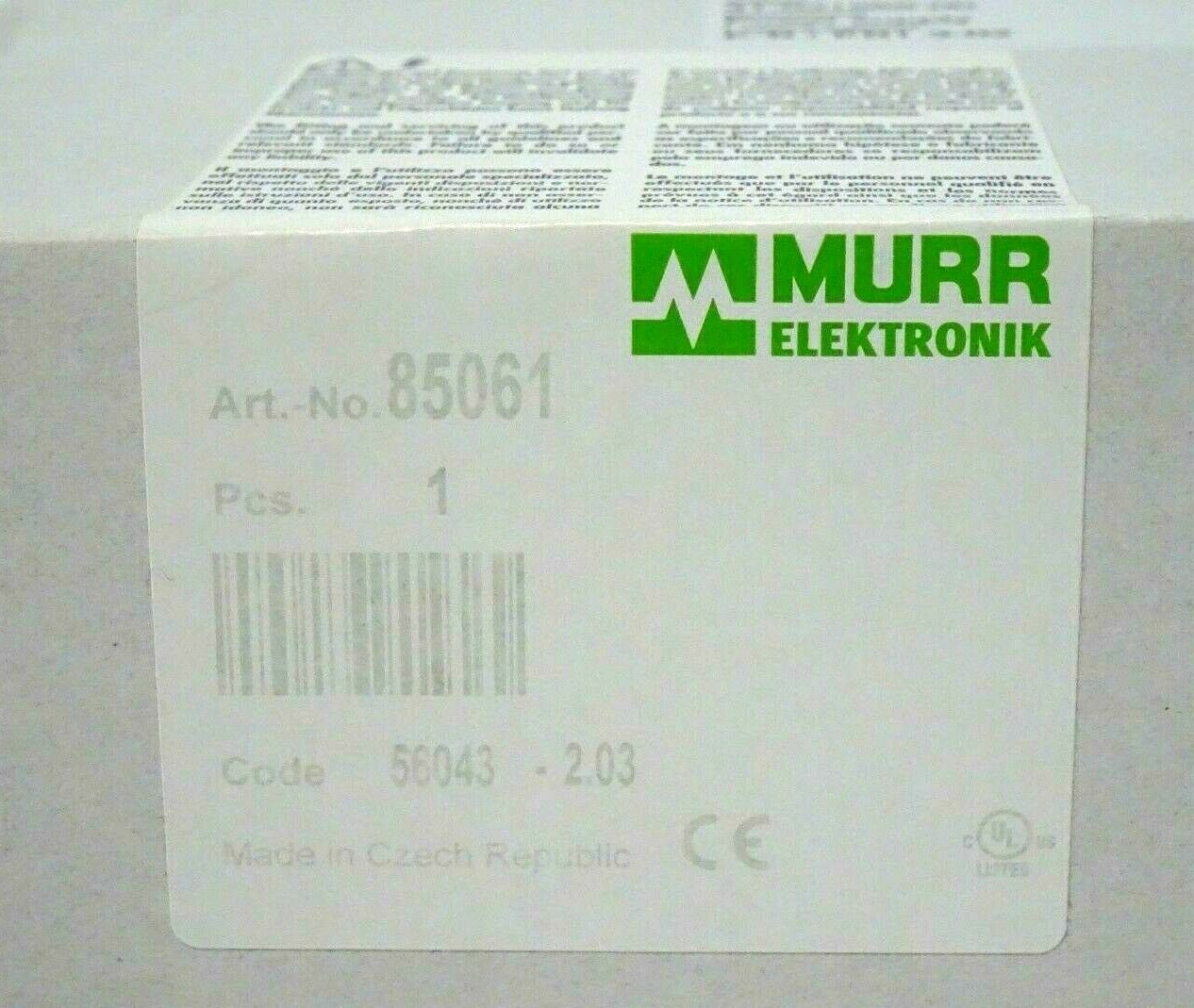 NEW SEALED MURR ELEKTRONIK 85061 POWER SUPPLY$180.00 Out of stock SKU: 193290699688 Category: Other Description Additional information Description NEW SEALED MURR ELEKTRONIK 85061 POWER SUPPLY 1688 RB Additional information Weight 2.00 lbs Country/Region of Manufacture Czech Republic MPN 85061 Brand MURR ELEKTRONIK We Buy New and Used Surplus Inventory - Sell to Us