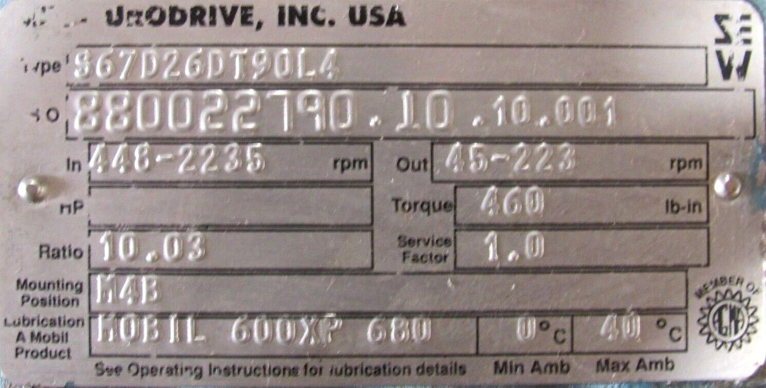 NEW SEW EURODRIVE DF26DT90L4 MOTOR/GEARBOX 230/460V 10.03:1 2HP S67D26DT90L4