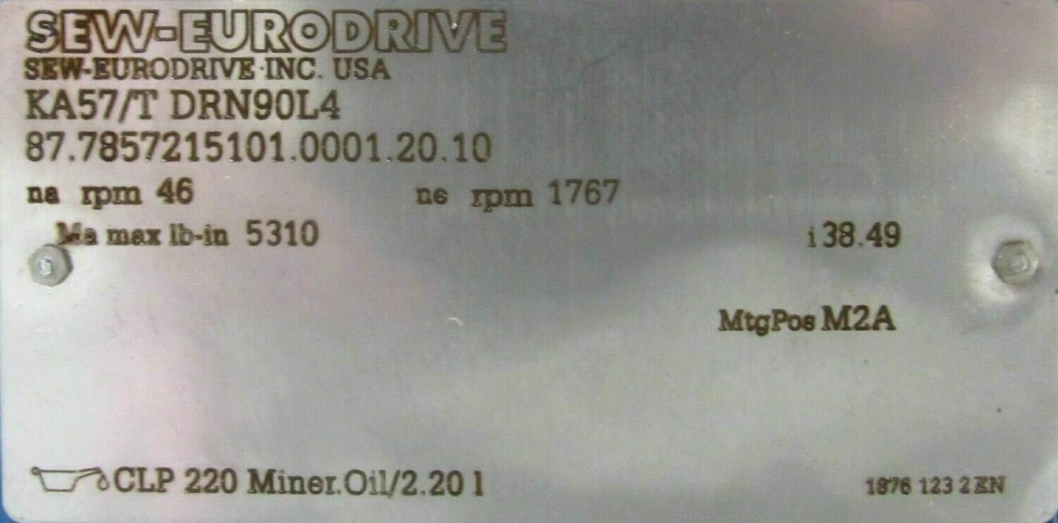 NEW SEW EURODRIVE KA57/T-DRN90L4 GEAR MOTOR 230/460V KA57TDRN90L4