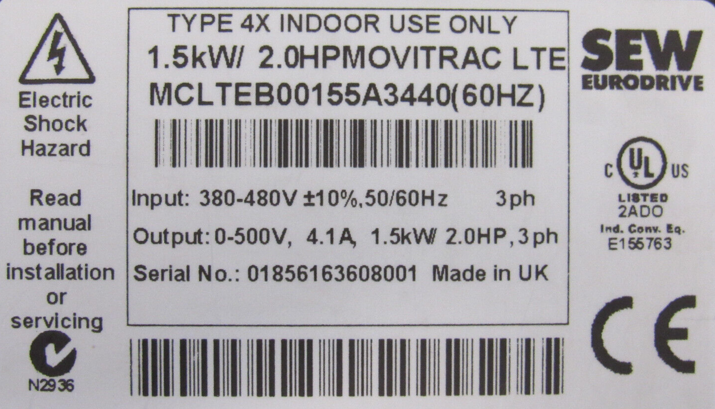 NEW SEW EURODRIVE MCLTEB00155A3440 DRIVE 2HP
