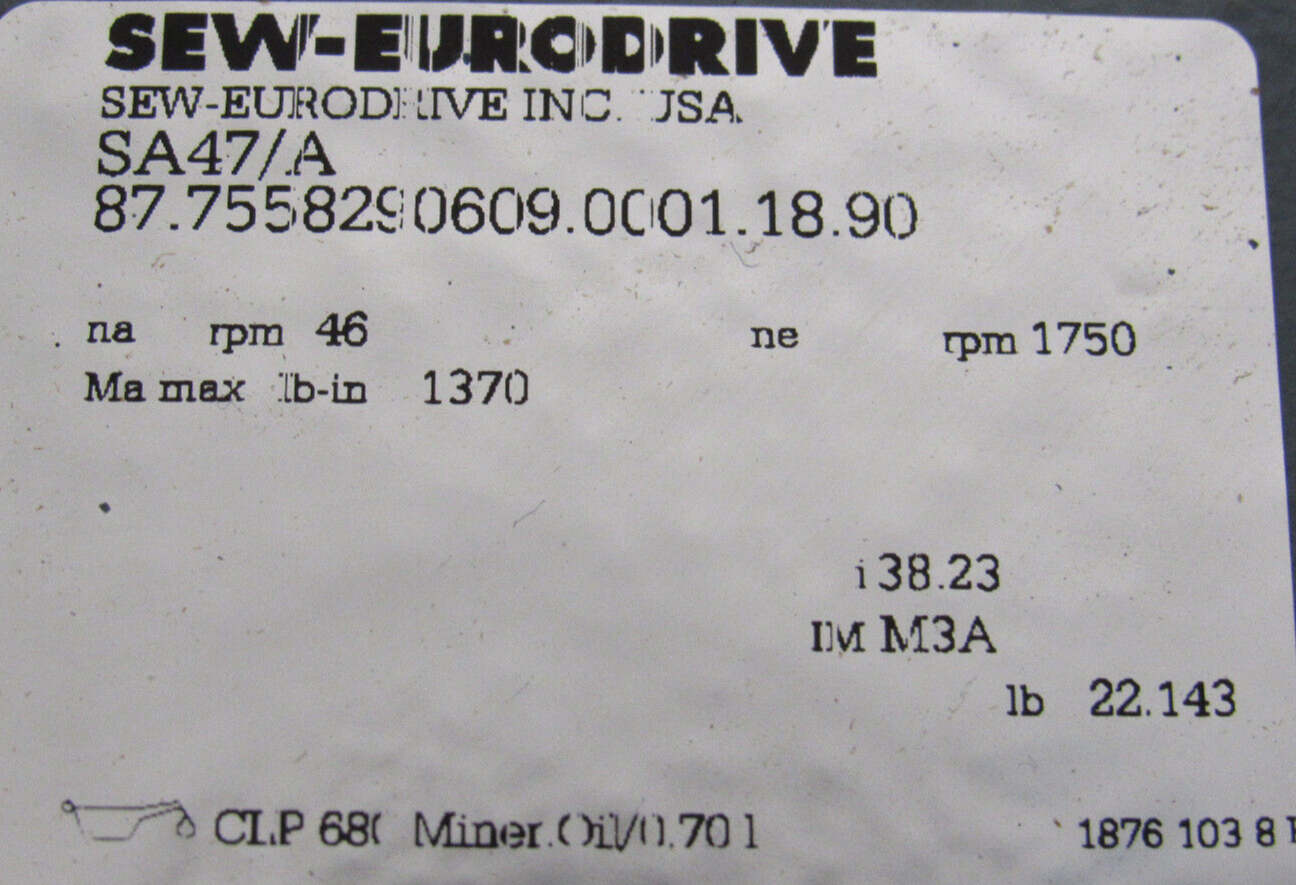 NEW SEW EURODRIVE SA47/A GEAR REDUCER 38.23:1 SA47A