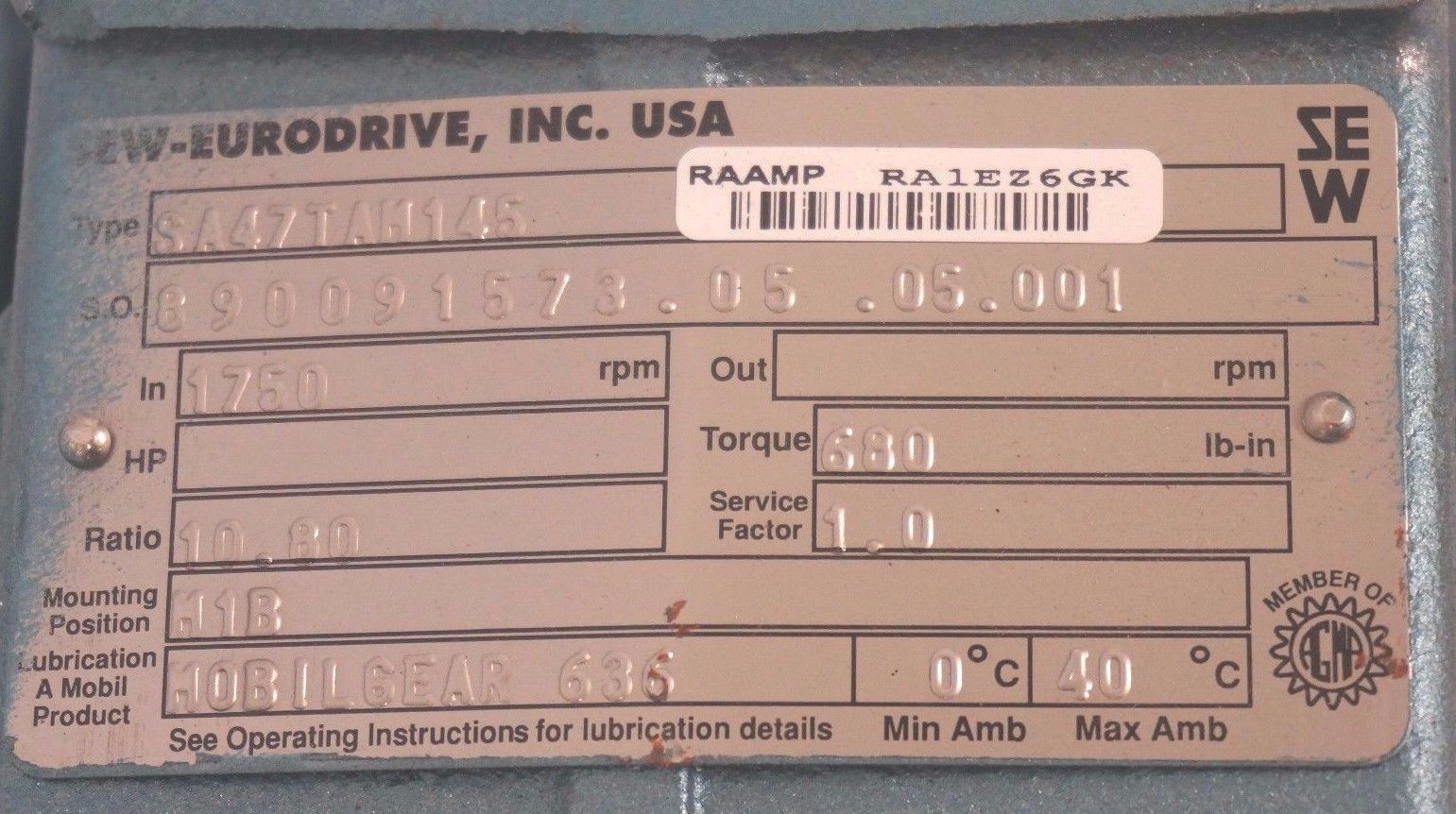 NEW SEW EURODRIVE SA47TAM145 GEAR REDUCER 10.80 RATIO