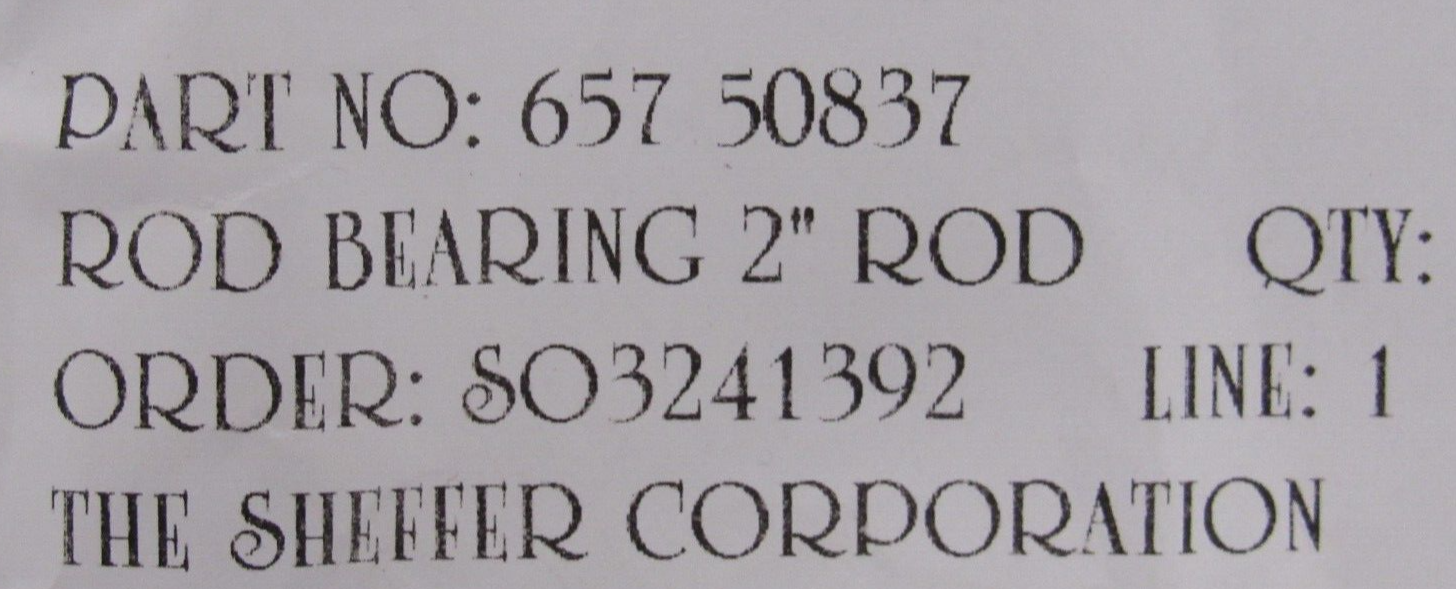 NEW SHEFFER 657-50837 ROD BEARING SLEEVE 2" I.D. 2-1/4" O.D. 65750837
