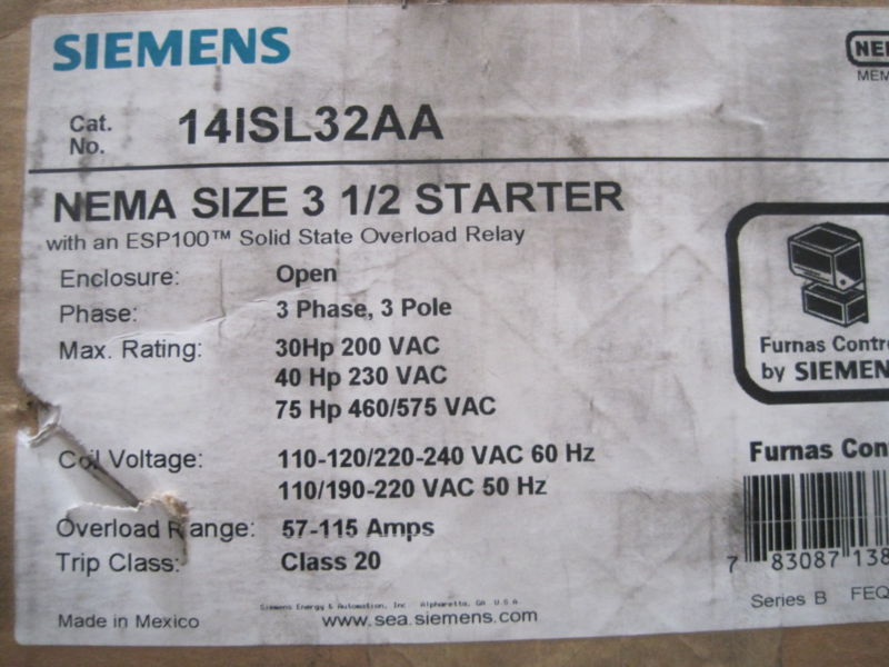 NEW SIEMENS 14ISL32AA STARTER SIZE 3 1/2$800.00 Out of stock SKU: 350456629158 Category: Other Description Additional information Description NEW SIEMENS 14ISL32AA STARTER SIZE 3 1/2 13 A-11 Additional information Weight 1 lbs We Buy New and Used Surplus Inventory - Sell to Us