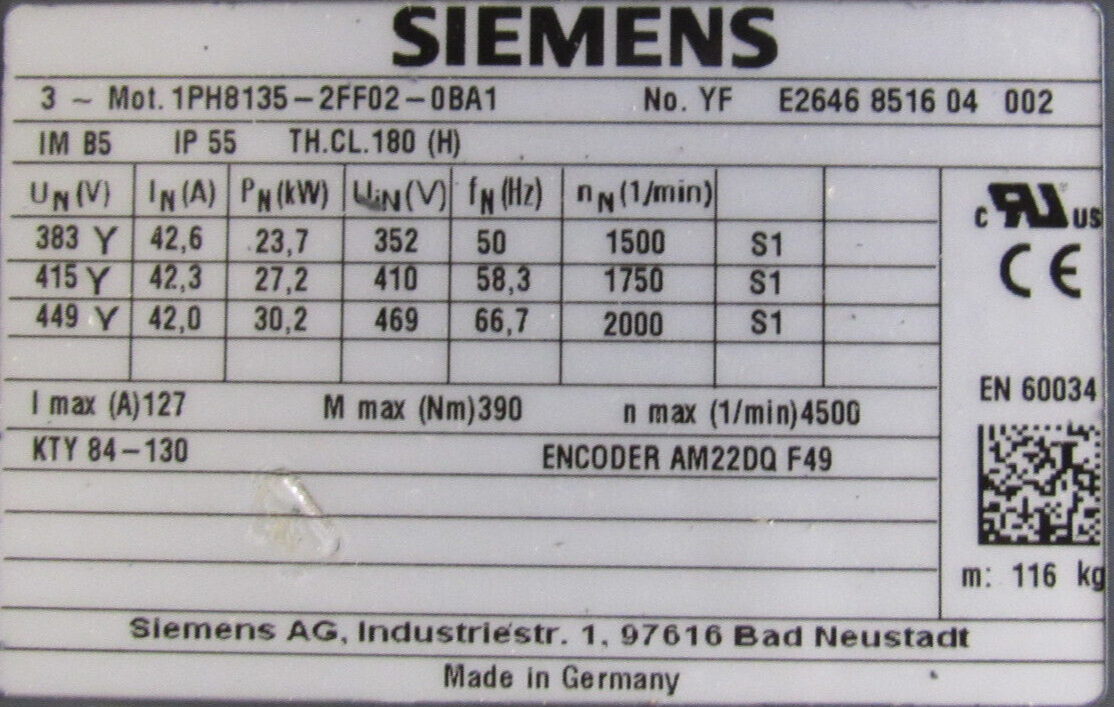 NEW SIEMENS 1PH8135-2FF02-0BA1 SYNCHRONOUS MOTOR 1PH81352FF020BA1