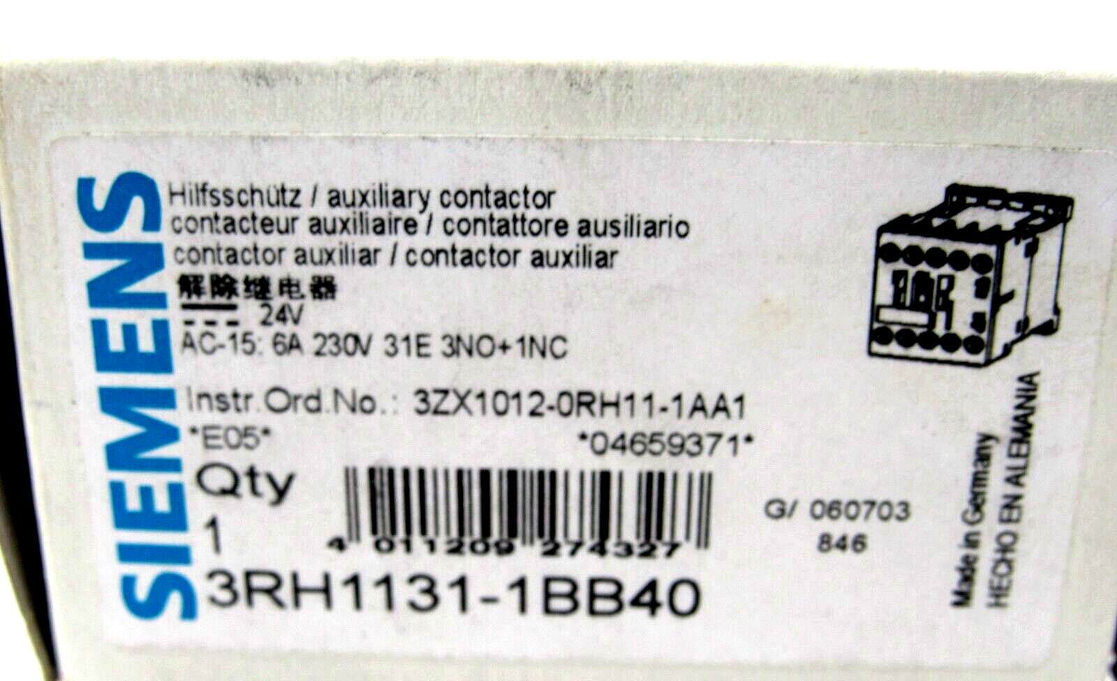 NEW SIEMENS 3RH1131-1BB40 CONTACTOR 3RH11311BB40