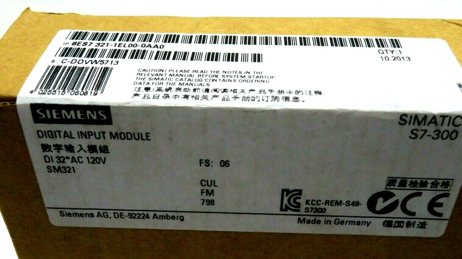 NEW SIEMENS 6ES7321-1EL00-0AA0 DIGITAL INPUT MODULE 6ES73211EL000AA0
