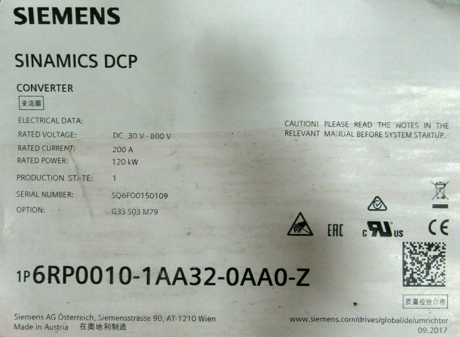 NEW SIEMENS 6RP0010-1AA32-0AA0-Z DC/DC CONVERTER 6RP00101AA320AA0Z