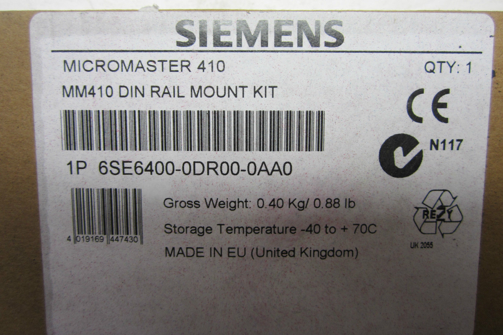 NEW SIEMENS 6SE6400-0DR00-0AA0 RAIL MOUNT KIT 6SE64000DR000AA0