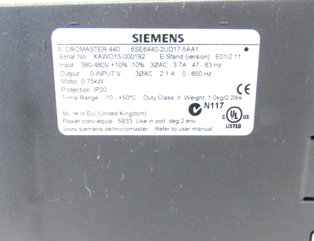 NEW SIEMENS 6SE6440-2UD17-5AA1 AC DRIVE MICROMASTER 440 6SE6440-2UD175AA1 - Image 3