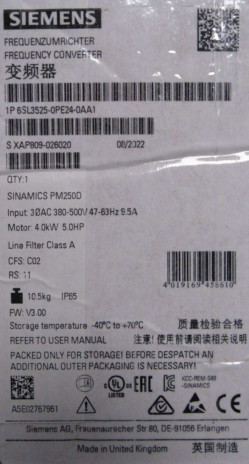 NEW SIEMENS 6SL3525-0PE24-0AA1 FREQUENCY CONVERTER 6SL35250PE240AA1