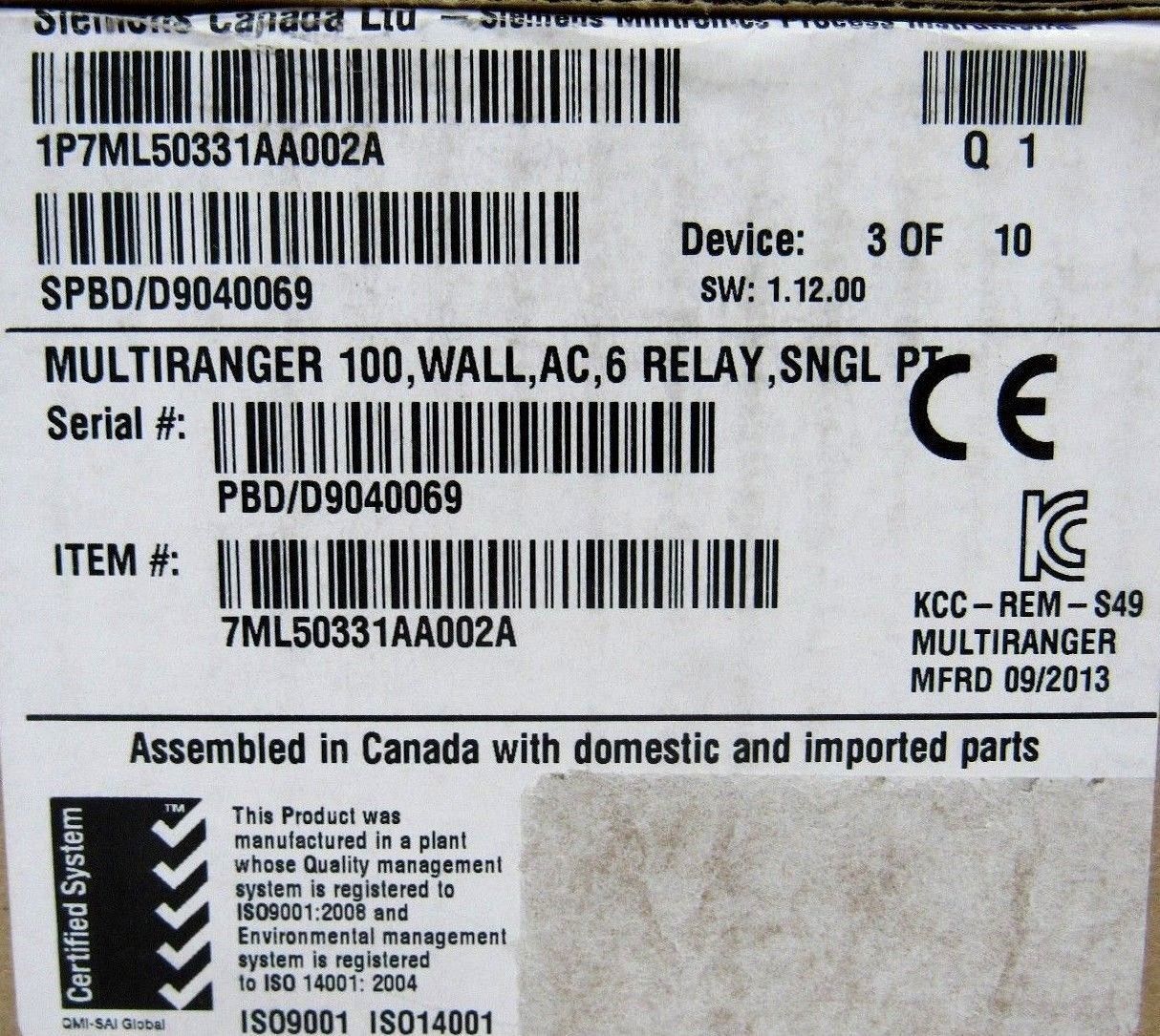 NEW SIEMENS 7ML50331AA002A MULTIRANGER 100 ULTRASONIC LEVEL TRANSMITTER