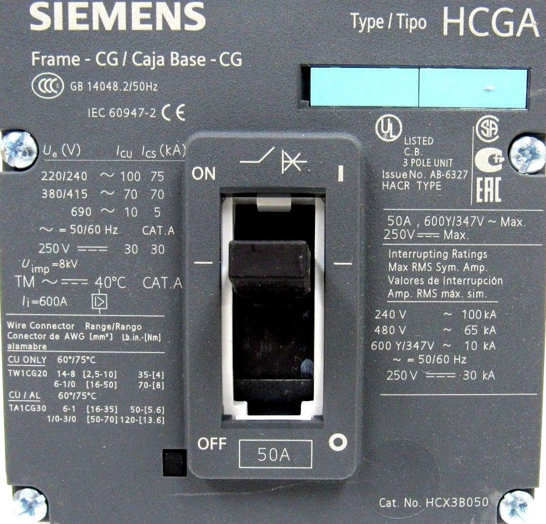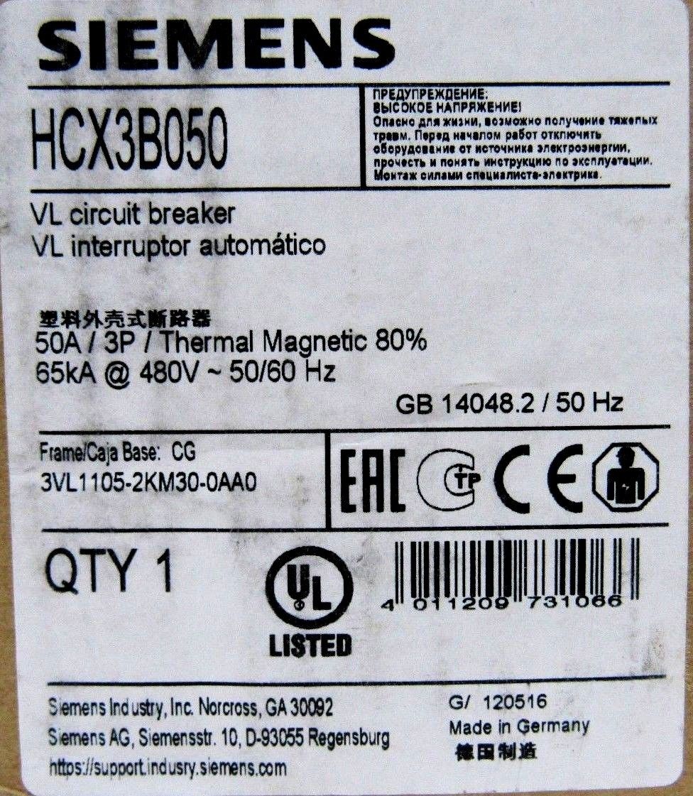 NEW SIEMENS HCX3B050 CIRCUIT BREAKER 50A 3POLE 3VL1105-2KM30-0AA0
