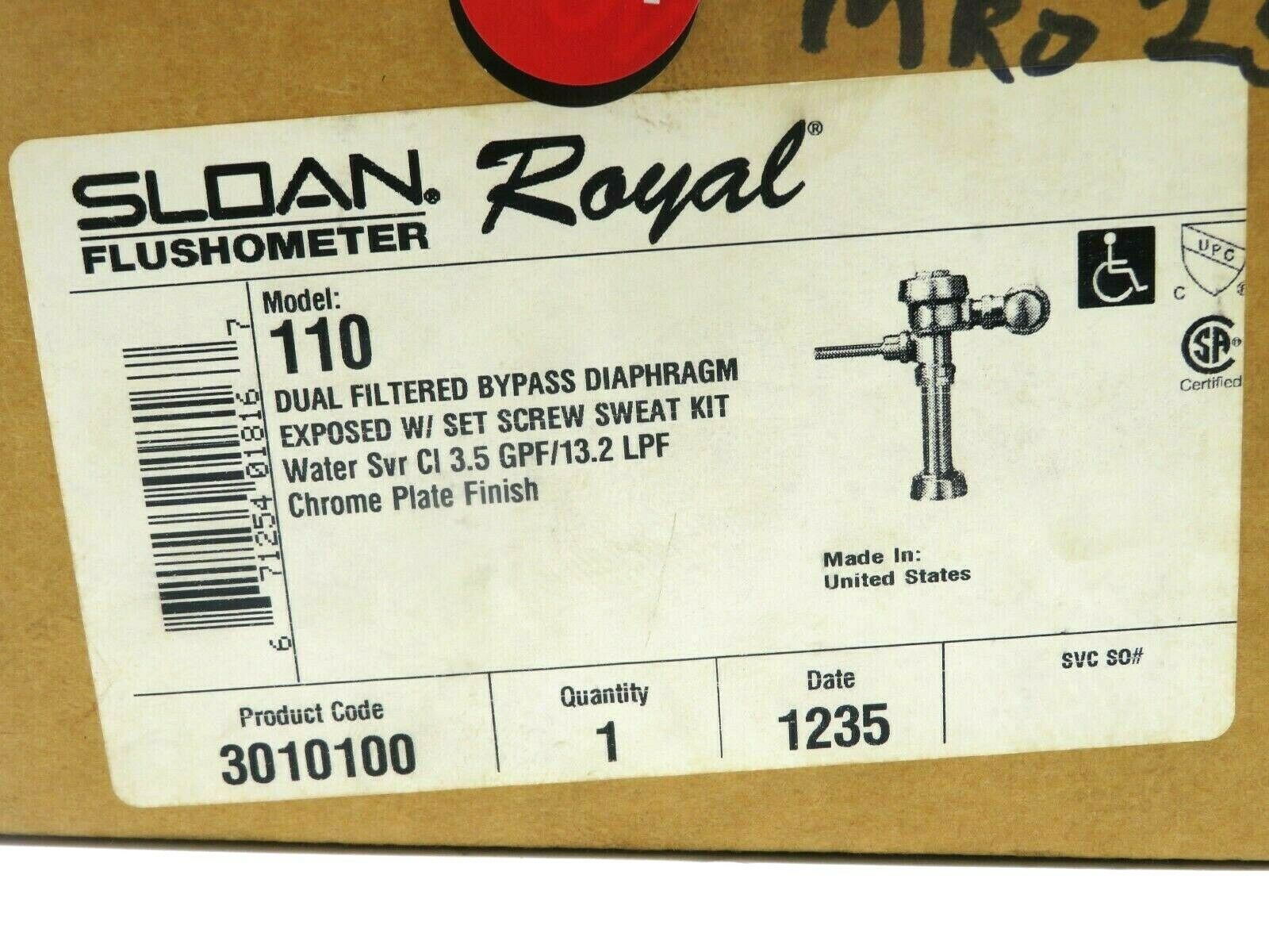 NEW SLOAN 110 FLUSHOMETER VALVE 3.5GPF/13.2LPF$115.00 Out of stock SKU: 194248968469 Category: Other Description Additional information Description NEW SLOAN 110 FLUSHOMETER VALVE 3.5GPF/13.2LPFB1SH97/BF Additional information Weight 7.00 lbs MPN 110 Brand SLOAN We Buy New and Used Surplus Inventory - Sell to Us