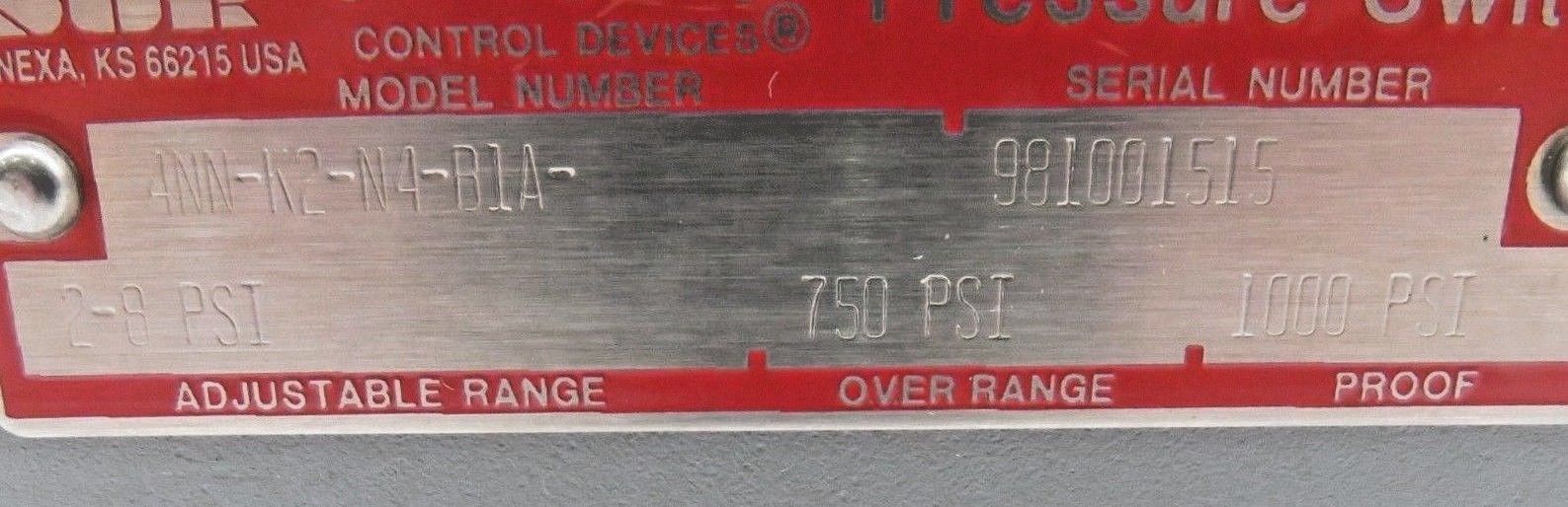 NEW SOR 4NN-K2-N4-BIA PRESSURE SWITCH 4NNK2N4BIANEW, NO BOX