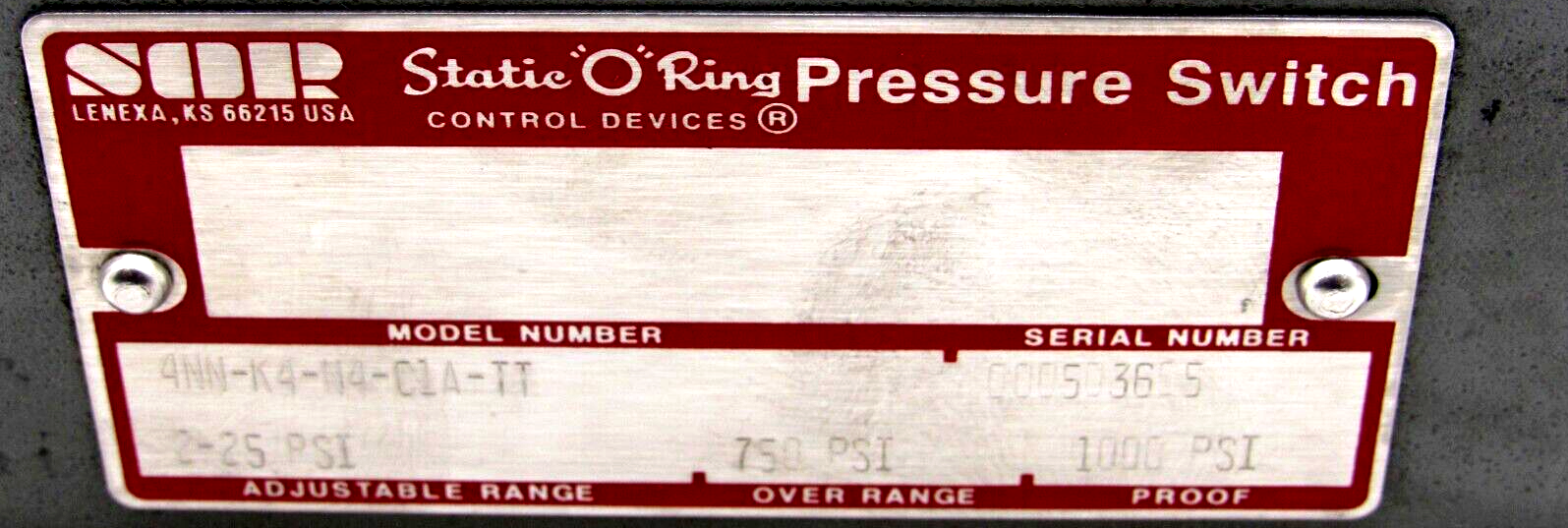 NEW SOR 4NN-K4-N4-C1A-TT PRESSURE SWITCH 4NNK4N4C1ATT