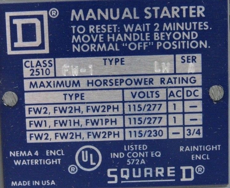 NEW SQUARE D 2510-FW-1 FHP MANUAL STARTER 2510FW1