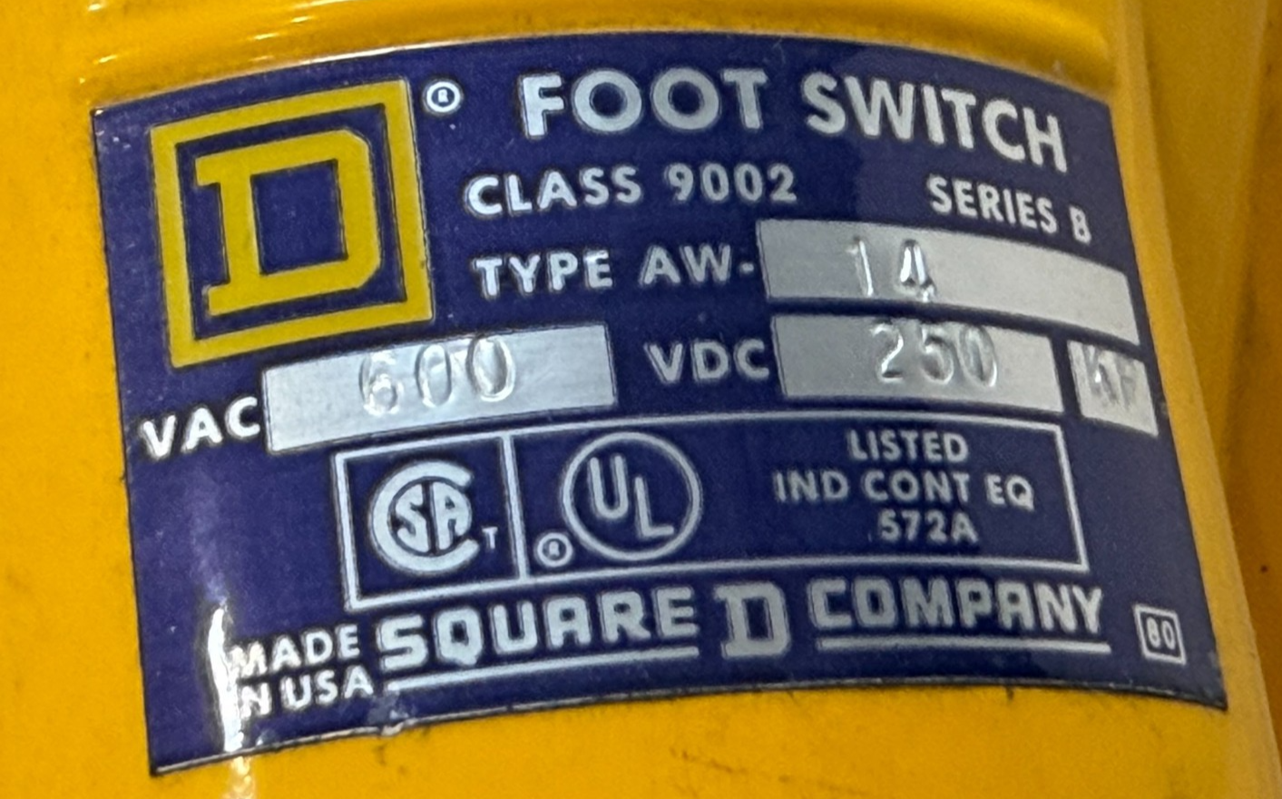 NEW SQUARE D 9002AW-14 FOOT SWITCH 600VAC 250VDC 9002AW14