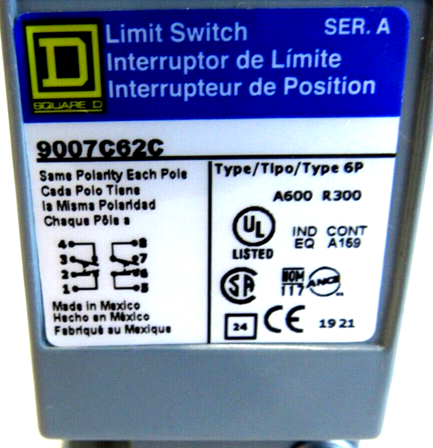 NEW SQUARE D 9007C62C LIMIT SWITCH SERIES A$200.00 Out of stock SKU: 176345326269 Category: Other Description Additional information Description NEW SQUARE D 9007C62C LIMIT SWITCH SERIES A1086/BF Additional information Weight 2.00 lbs Brand SQUARE D Fuse Type Switch MPN 9007C62C We Buy New and Used Surplus Inventory - Sell to Us