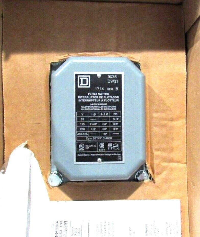NEW SQUARE D 9036DW31 OPEN TANK FLOAT SWITCH SER.B$285.00 Out of stock SKU: 175298082821 Category: Other Description Additional information Description NEW SQUARE D 9036DW31 OPEN TANK FLOAT SWITCH SER.B B1/S-22 RB Additional information Weight 5.00 lbs Country/Region of Manufacture Mexico Brand SQUARE D We Buy New and Used Surplus Inventory - Sell to Us