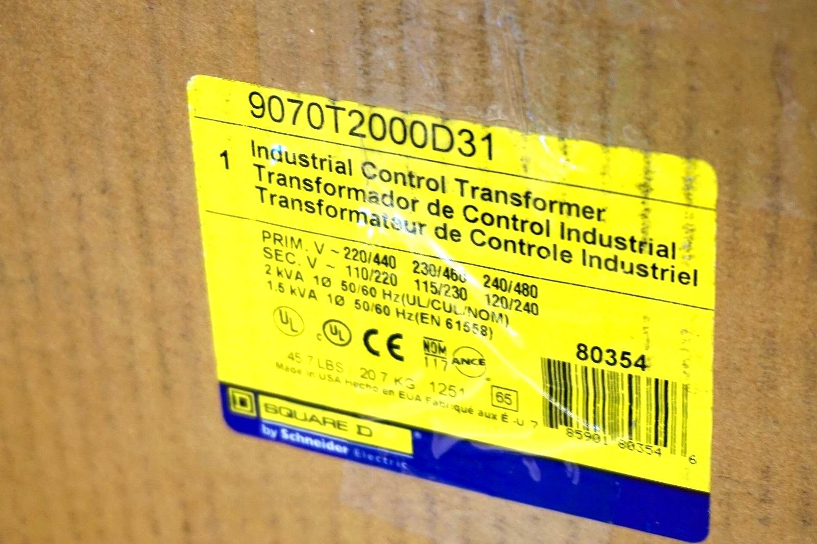 NEW SQUARE D 9070-T2000D31 INDUSTRIAL CONTROL TRANSFORMER 9070T2000D31