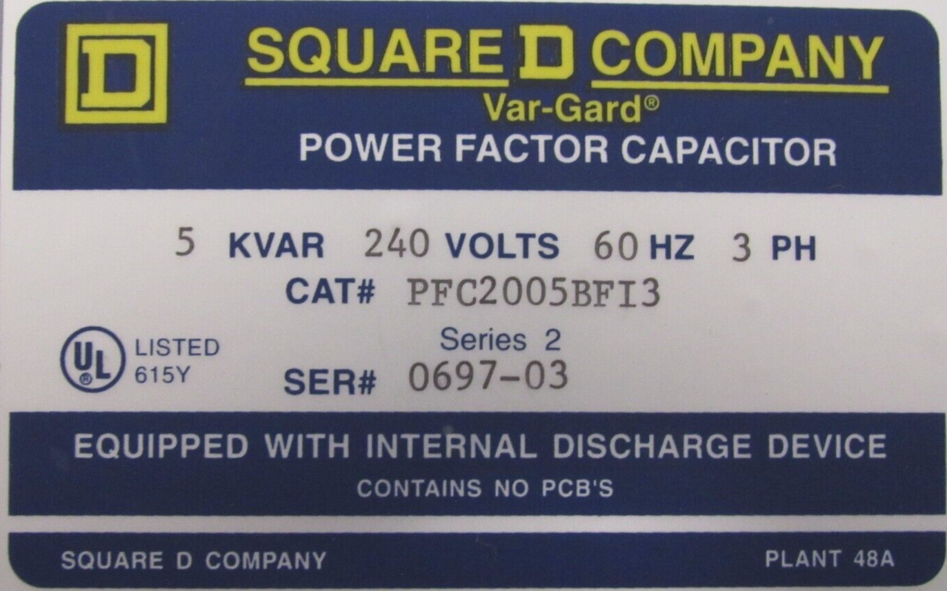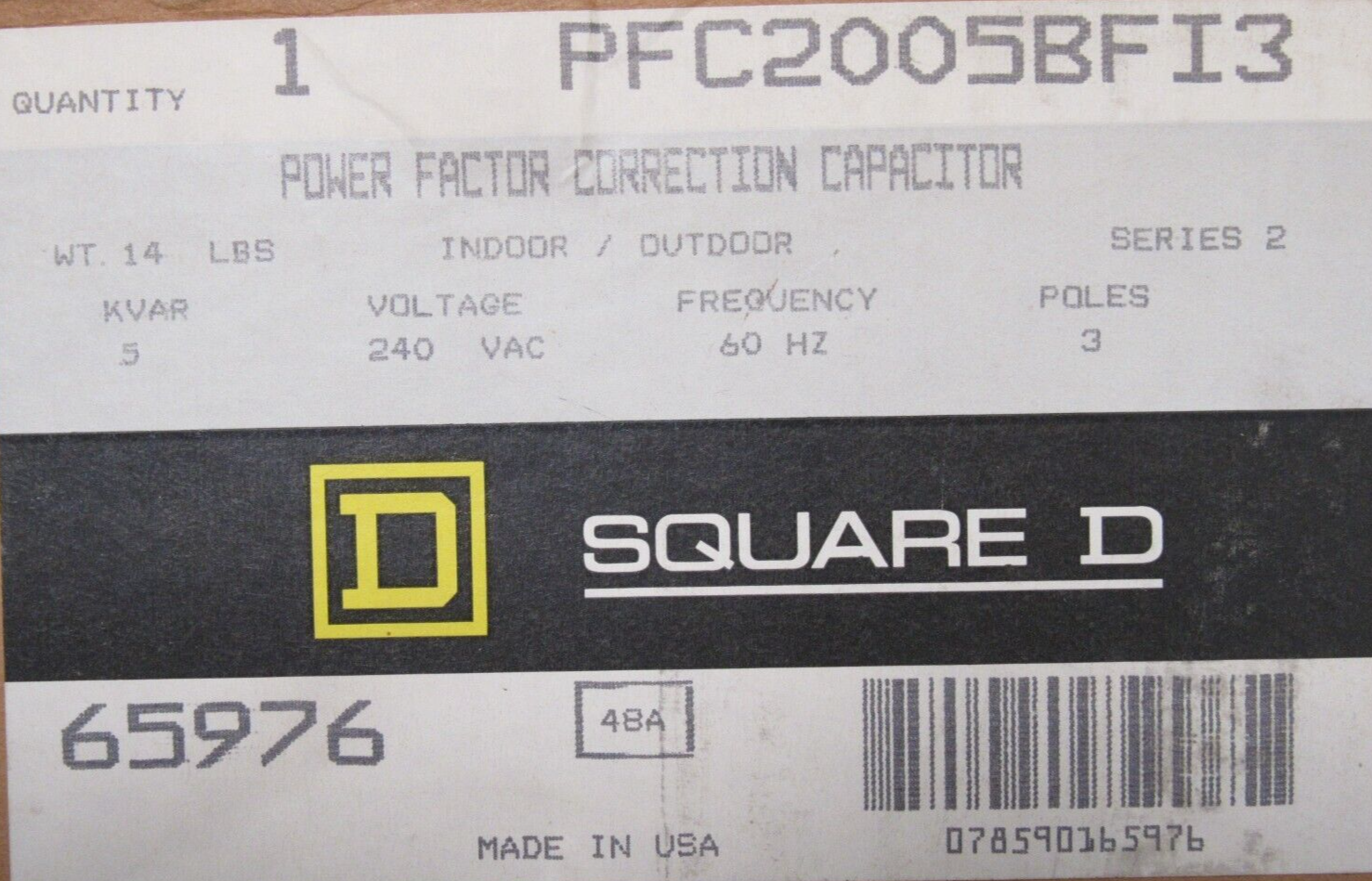 NEW SQUARE D PFC2005BFI3 POWER FACTOR CAPACITOR 5KVAR 240V 65976