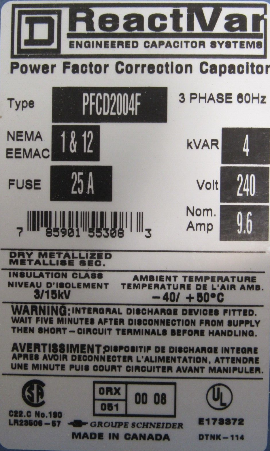 NEW SQUARE D PFCD2004F POWER FACTOR CORRECTION CAPACITOR 4KVAR 240V$850.00 Only 1 left in stock NEW SQUARE D PFCD2004F POWER FACTOR CORRECTION CAPACITOR 4KVAR 240V quantity Add to cart SKU: 354571767394 Category: Other Description Additional information Description NEW SQUARE D PFCD2004F POWER FACTOR CORRECTION CAPACITOR 4KVAR 240V B2/39 BB Additional information Weight 20.00 lbs Brand SQUARE D MPN PFCD2004F We Buy New and Used Surplus Inventory - Sell to Us
