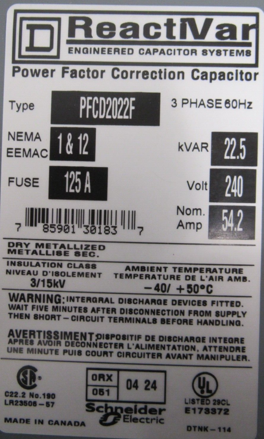 NEW SQUARE D PFCD2022F POWER FACTOR CORRECTION CAPACITOR$3,000.00 Only 1 left in stock NEW SQUARE D PFCD2022F POWER FACTOR CORRECTION CAPACITOR quantity Add to cart SKU: 354749304268 Category: Other Description Additional information Description NEW SQUARE D PFCD2022F POWER FACTOR CORRECTION CAPACITOR B1/120 BB Additional information Weight 29.00 lbs Brand SQUARE D MPN PFCD2022F We Buy New and Used Surplus Inventory - Sell to Us