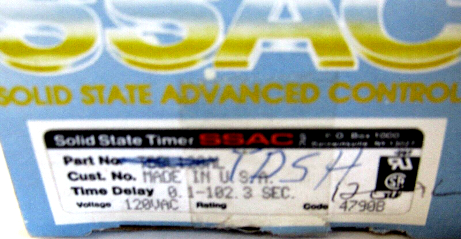 NEW SSAC TDSH120AL TIME DELAY RELAY 120VAC$115.00 Out of stock SKU: 176325269748 Category: Other Description Additional information Description NEW SSAC TDSH120AL TIME DELAY RELAY 120VAC1467/BF Additional information Weight 0.56 lbs Brand SSAC MPN TDSH120AL Country/Region of Manufacture United States We Buy New and Used Surplus Inventory - Sell to Us