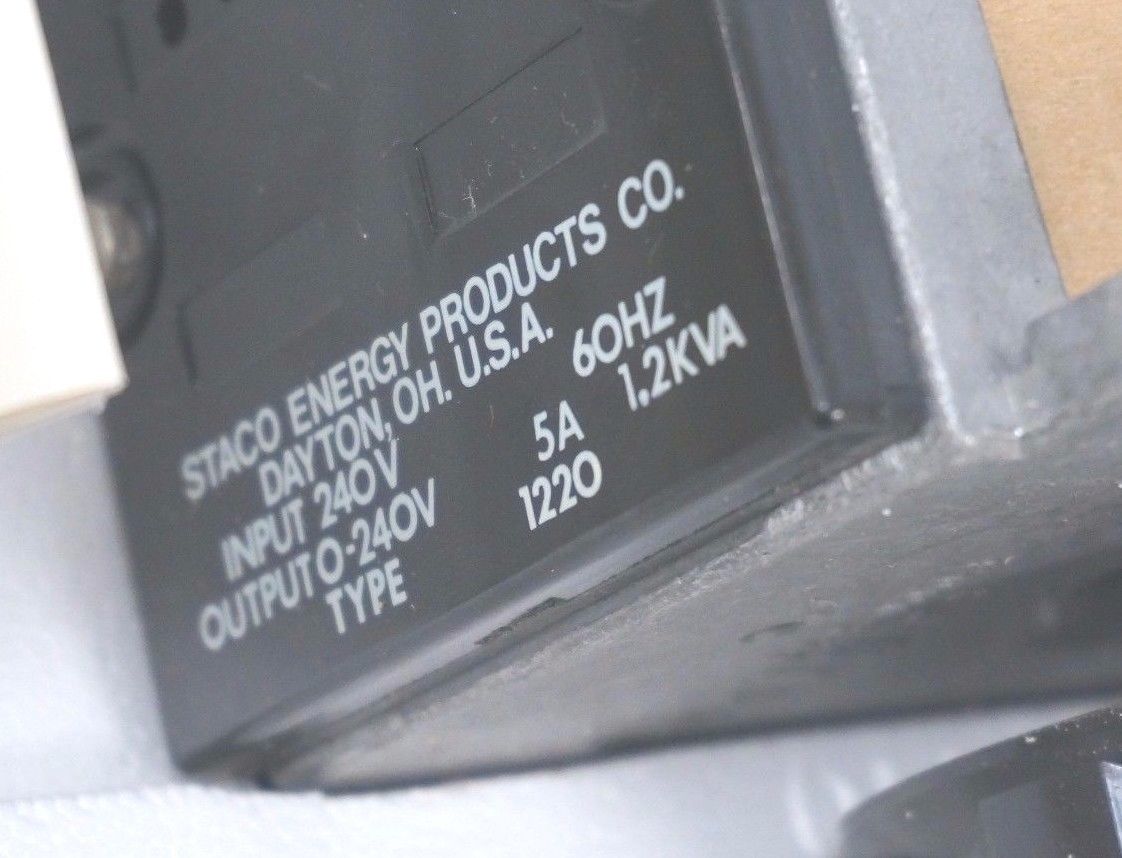 NEW STACO TYPE: 1220 VARIABLE TRANSFORMER 240V, 60HZ, 1.2KVA MAX