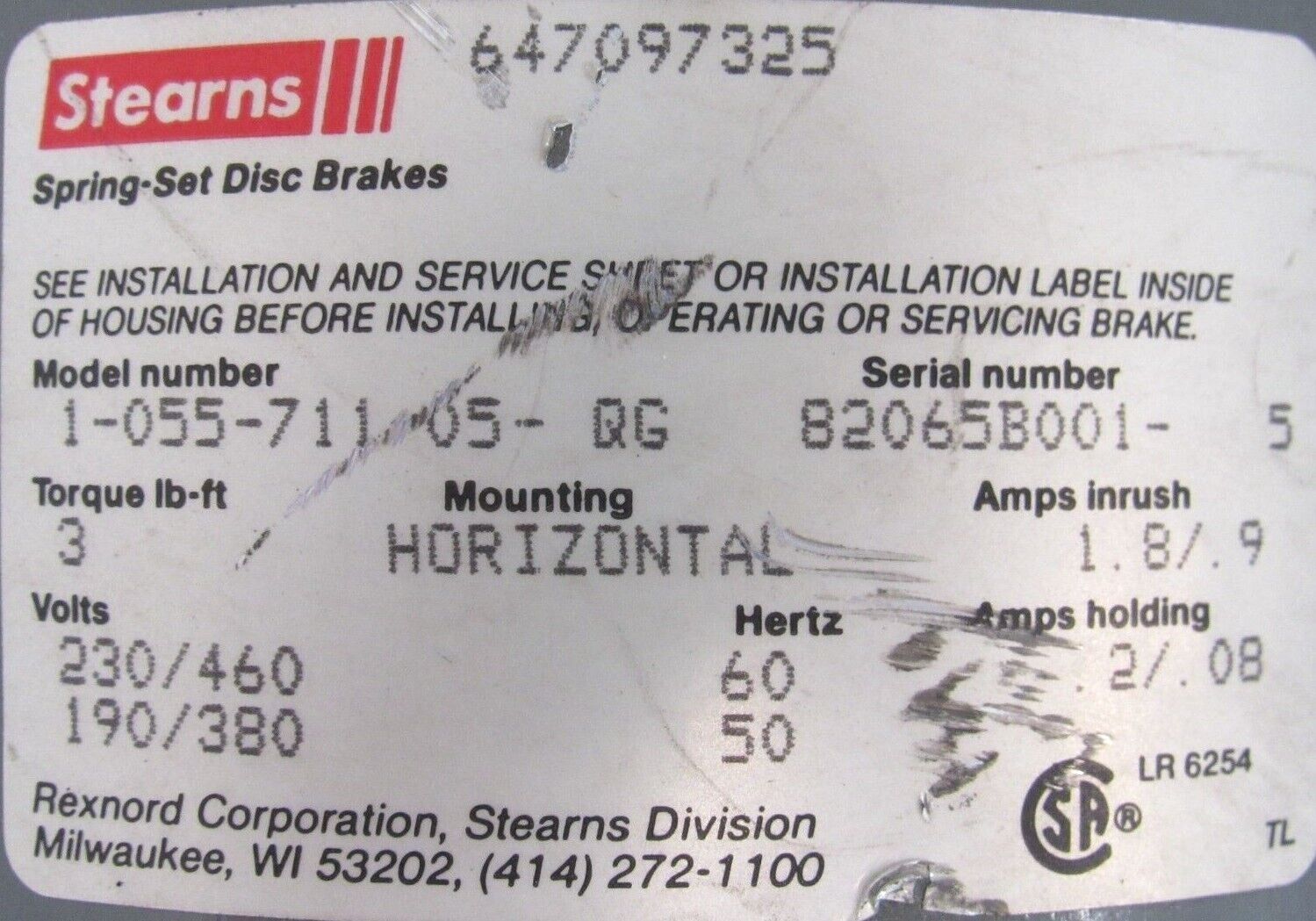 NEW STEARNS 1-055-711-05-QG MOTOR BRAKE 230/460V 105571105QG