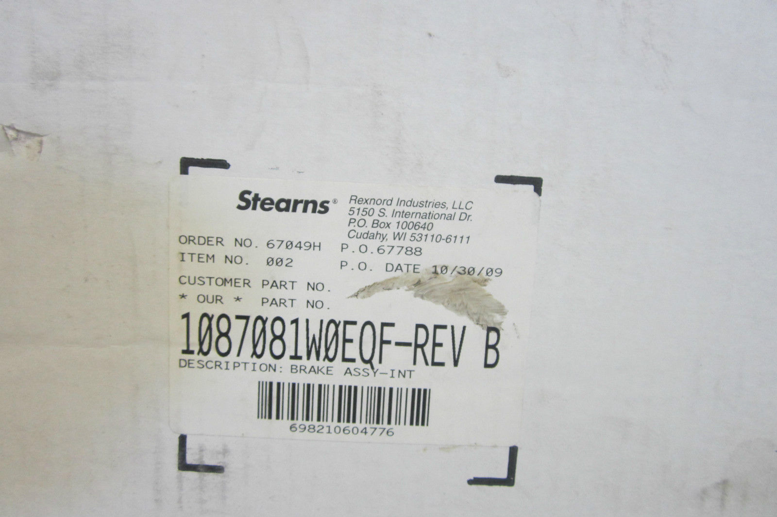 NEW STEARNS 1087081W0EQF BRAKE ASSEMBLY REV.B$1,600.00 Out of stock SKU: 170938832906 Category: Other Description Additional information Description NEW STEARNS 1087081W0EQF BRAKE ASSEMBLY REV.B NEW, OPEN BOX 12-FLOOR RB Additional information Weight 1 lbs We Buy New and Used Surplus Inventory - Sell to Us