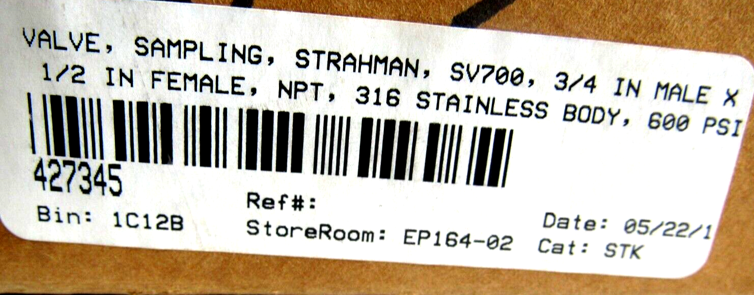 NEW STRAHMAN VALVES SV-700 SAMPLING VALVE 3/4″MALE x 1/2″FEMALE SV700