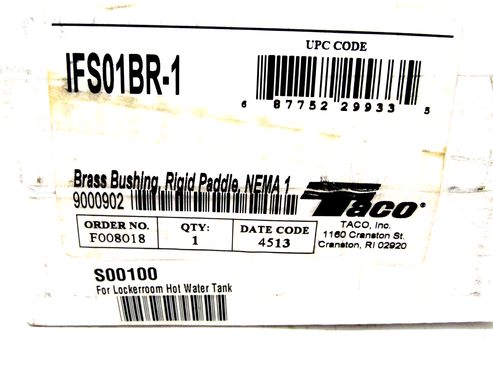 NEW TACO IFS01BR-1 BRASS BUSHING, RIGID PADLE FLOW SWITCH IFS01BR1