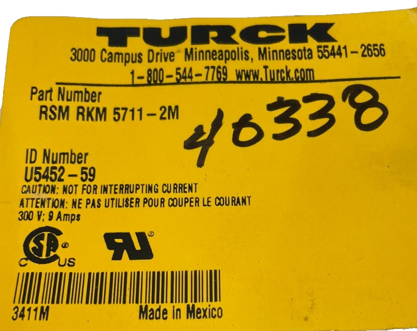 NEW TURCK RSM RKM 5711-2M CORDSET U5452-59 RSMRKM57112M