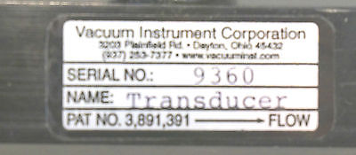 NEW VACUUM INSTRUMENT CORPORATION TRANSDUCER FLOW SENSOR