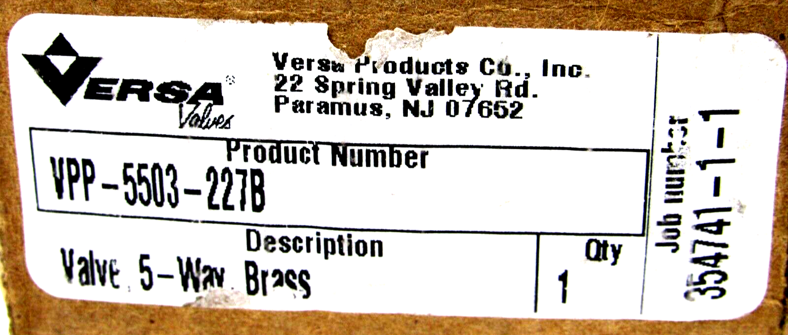 NEW VERSA VPP-5503-227B BRASS PILOT VALVE VPP5503227B