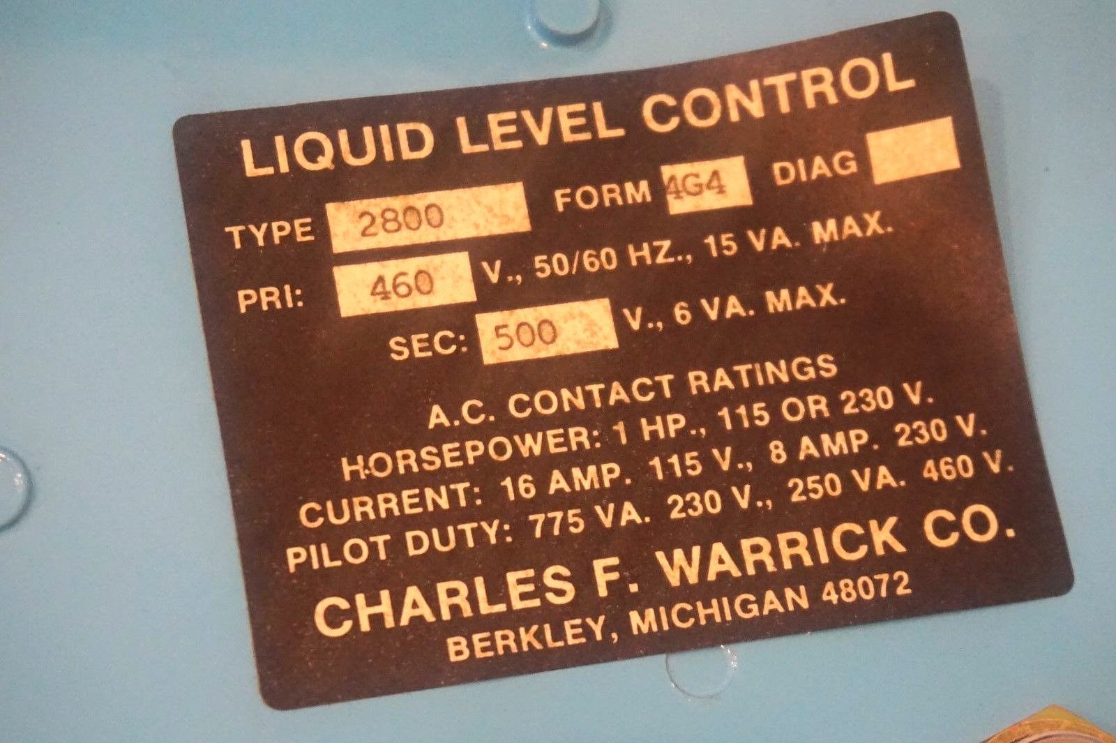 NEW WARRICK CONTROLS 2800 FORM 4G4 PUMP MOTOR MOISTURE DETECTOR 1 HP, 115 / 230V