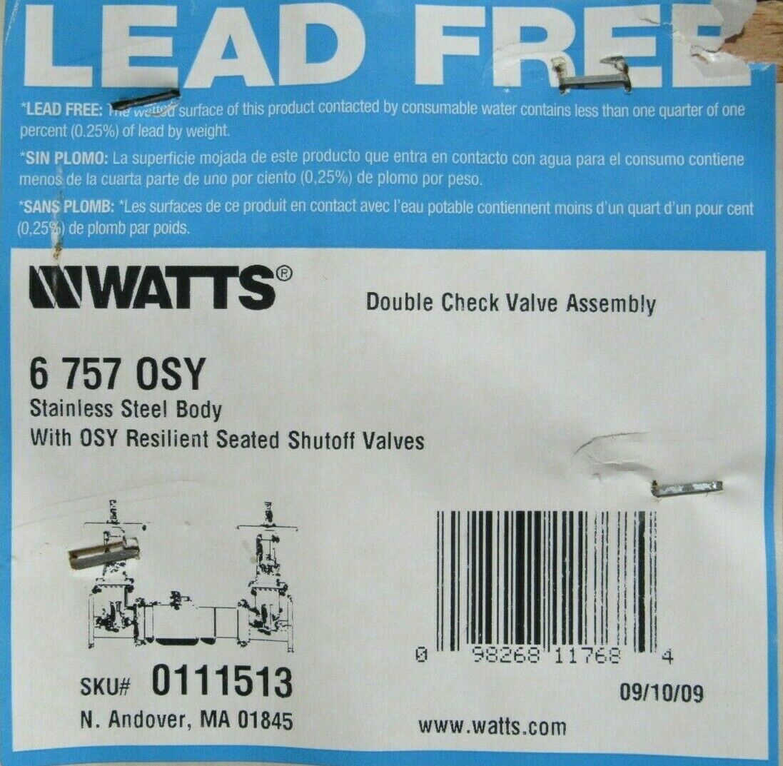 NEW WATTS 0111513 DOUBLE CHECK VALVE ASSEMBLY 6 757 OSY$2,000.00 Out of stock SKU: 353480619084 Category: Other Description Additional information Description NEW WATTS 0111513 DOUBLE CHECK VALVE ASSEMBLY 6 757 OSY B1/BACK BB Additional information Weight 350.00 lbs MPN 0111513 Brand WATTS Model 6757OSY We Buy New and Used Surplus Inventory - Sell to Us