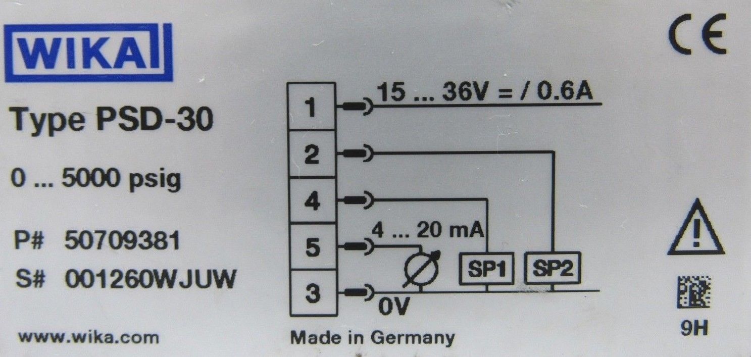 NEW WIKA PSD-30 PRESSURE TRANSMITTER 5000 PSIG PSD30