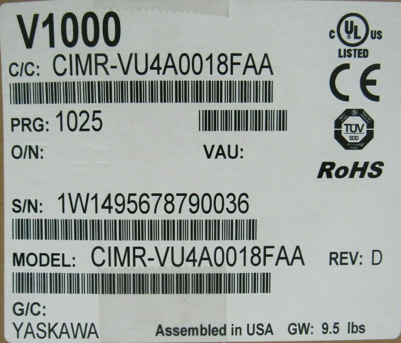 NEW YASKAWA CIMR-VU4A0018FAA DRIVE V1000 CIMRVU4A0018FAA