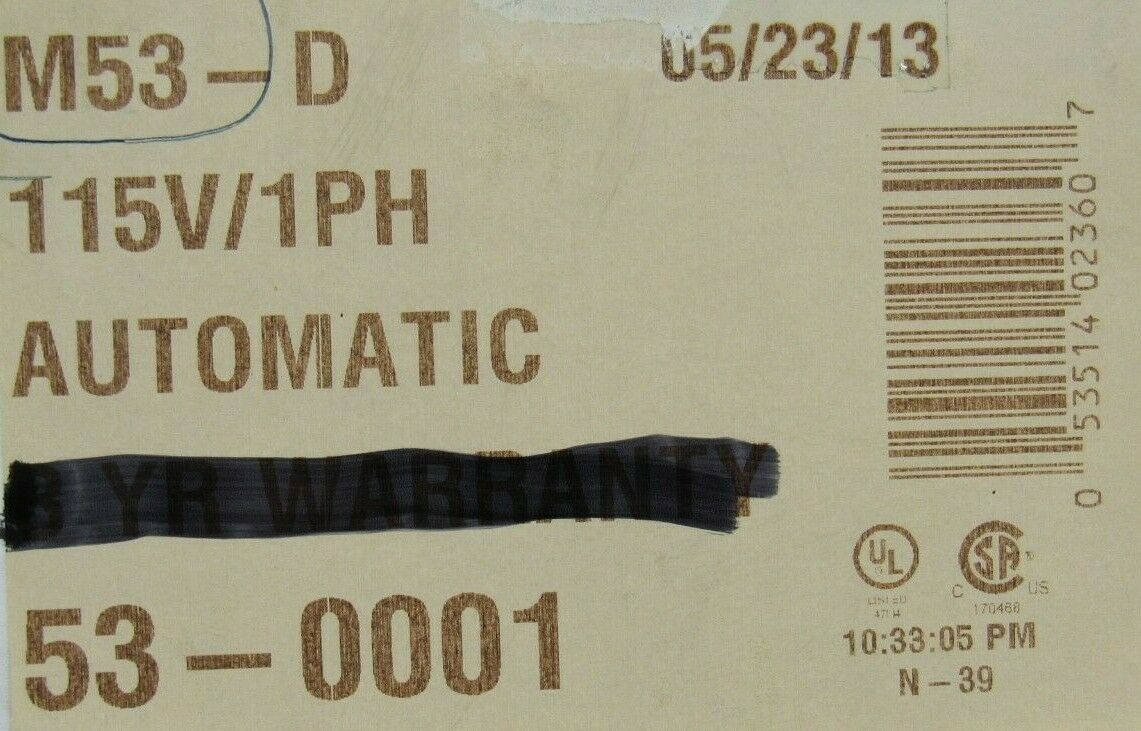 NEW ZOELLER 53-0001 MIGHTY MATE SUBMERSIBLE SUMP PUMP 115V .3HP M53-D$170.00 Out of stock SKU: 174132071324 Category: Other Description Additional information Description NEW ZOELLER 53-0001 MIGHTY MATE SUBMERSIBLE SUMP PUMP 115V .3HP M53-D B3/S78 BB Additional information Weight 24.00 lbs Brand ZOELLER MPN 53-0001 Horsepower 1/3 hp Model 53-0001 Solids Handling No Type Sump Power Type Electric Pump Type Sump Pump Inlet Diameter 1-1/2" Submersible Submersible We Buy New and Used Surplus Inventory - Sell to Us