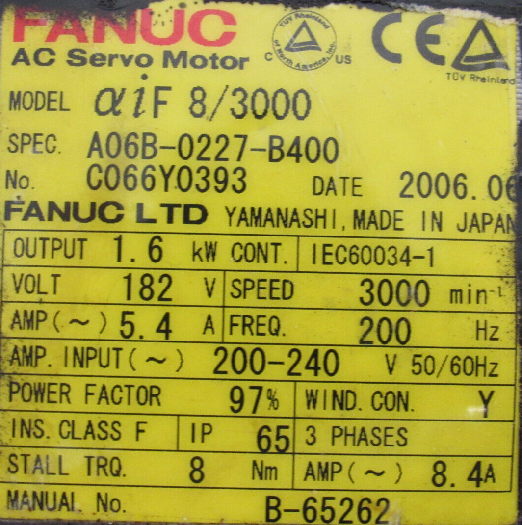 REFURBISHED FANUC A06B-0227-B400 SERVO MOTOR A860-2000-T301 AIF 8/3000