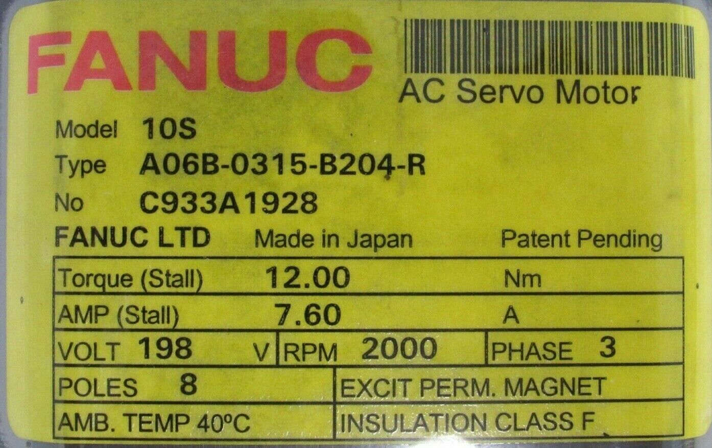 REFURBISHED FANUC A06B-0315-B204-R SERVO MOTOR A06B0315B204R A06B-0315-B204