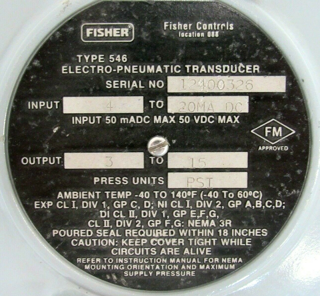 REFURBISHED FISHER 546 ELECTRO PNEUMATIC TRANSDUCER$300.00 Out of stock SKU: 195069125258 Category: Other Description Additional information Description REFURBISHED FISHER 546 ELECTRO PNEUMATIC TRANSDUCER B3/243 BB Additional information Weight 11.00 lbs MPN 546 Brand FISHER We Buy New and Used Surplus Inventory - Sell to Us
