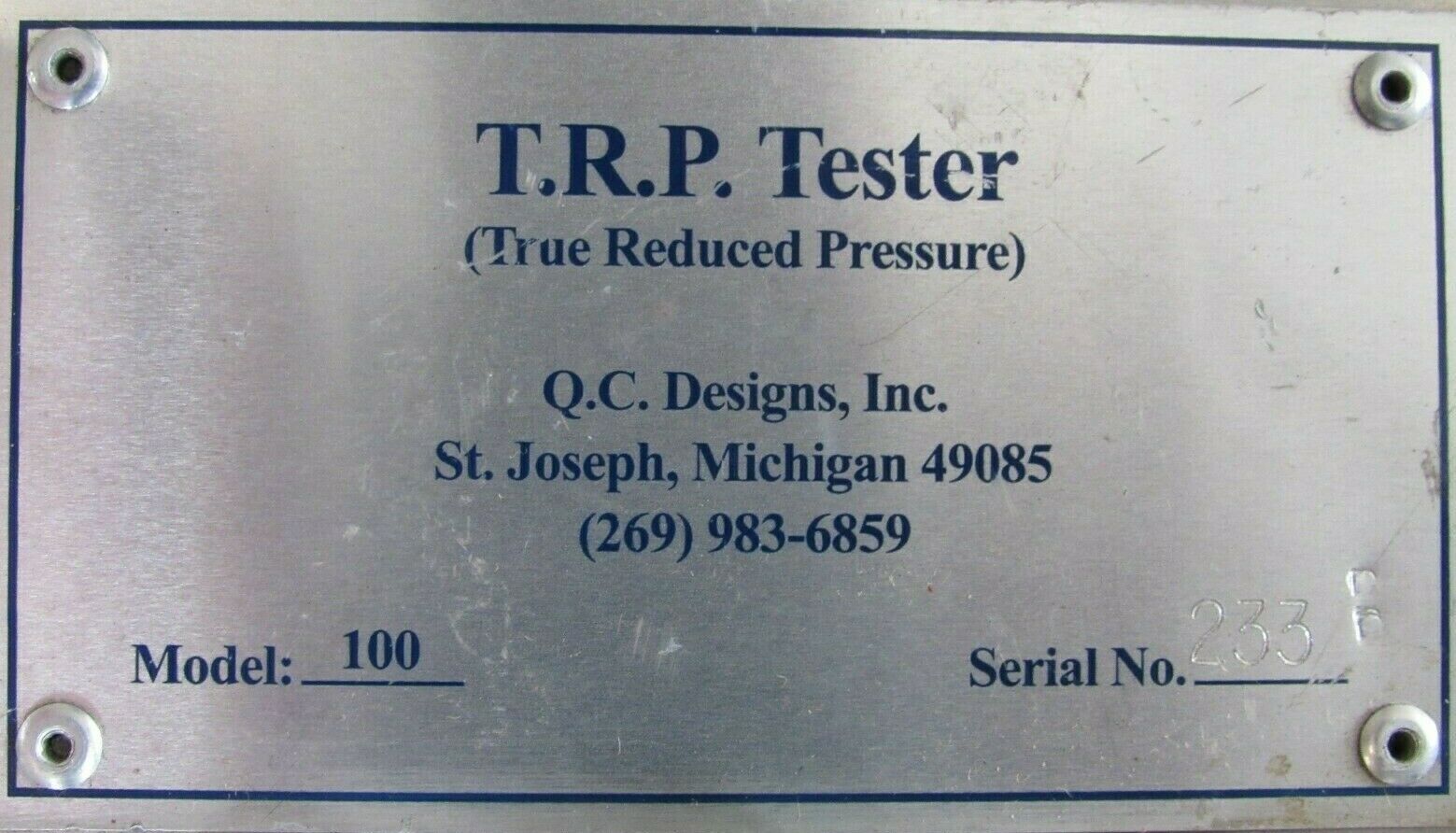 REFURBISHED Q.C. DESIGNS MODEL 100 TRUE REDUCED PRESSURE VACUUM TESTER