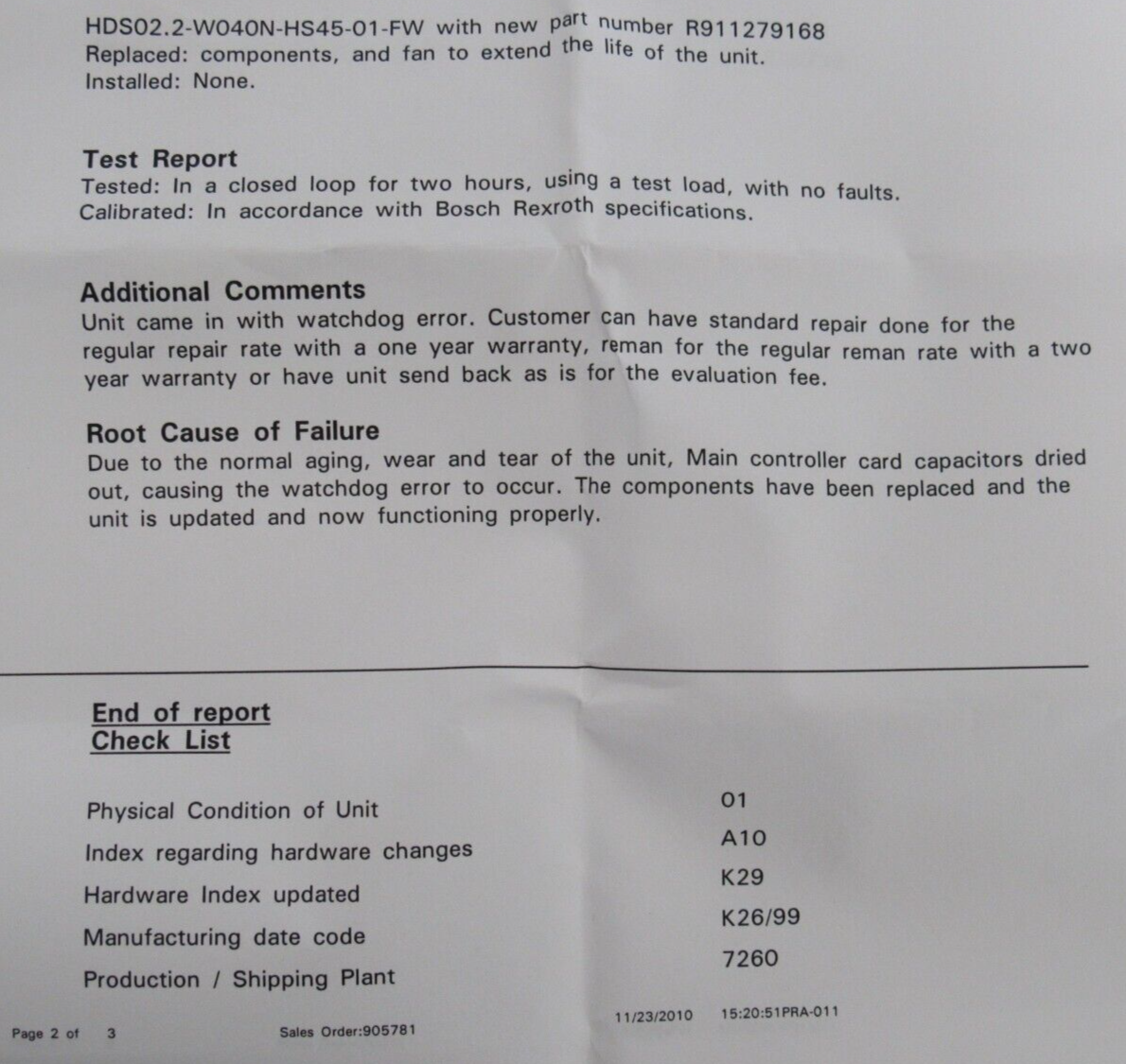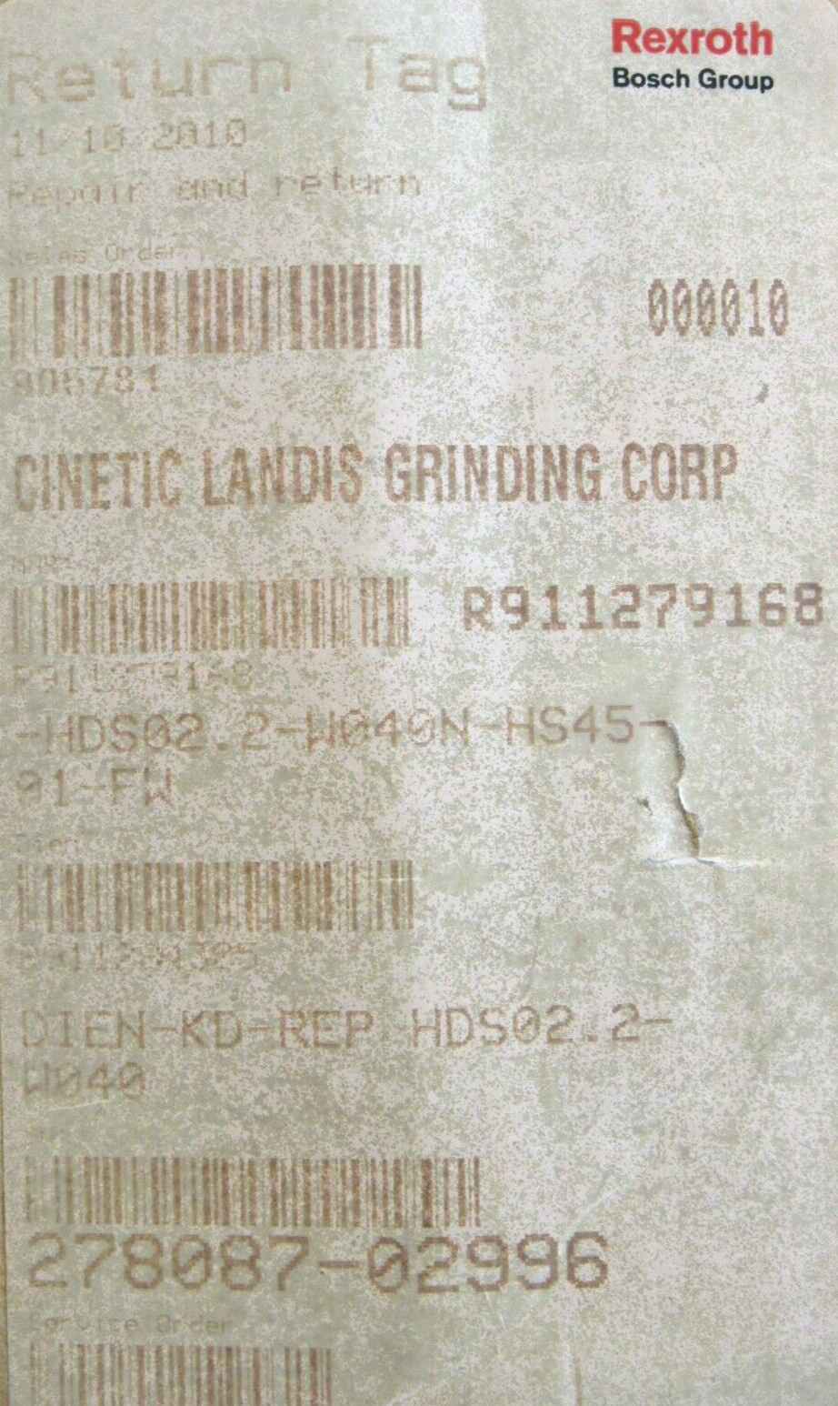 REFURBISHED REXROTH HDS02.2-W040N-HS45-01-FW DRIVE CONTROLLER R911279168
