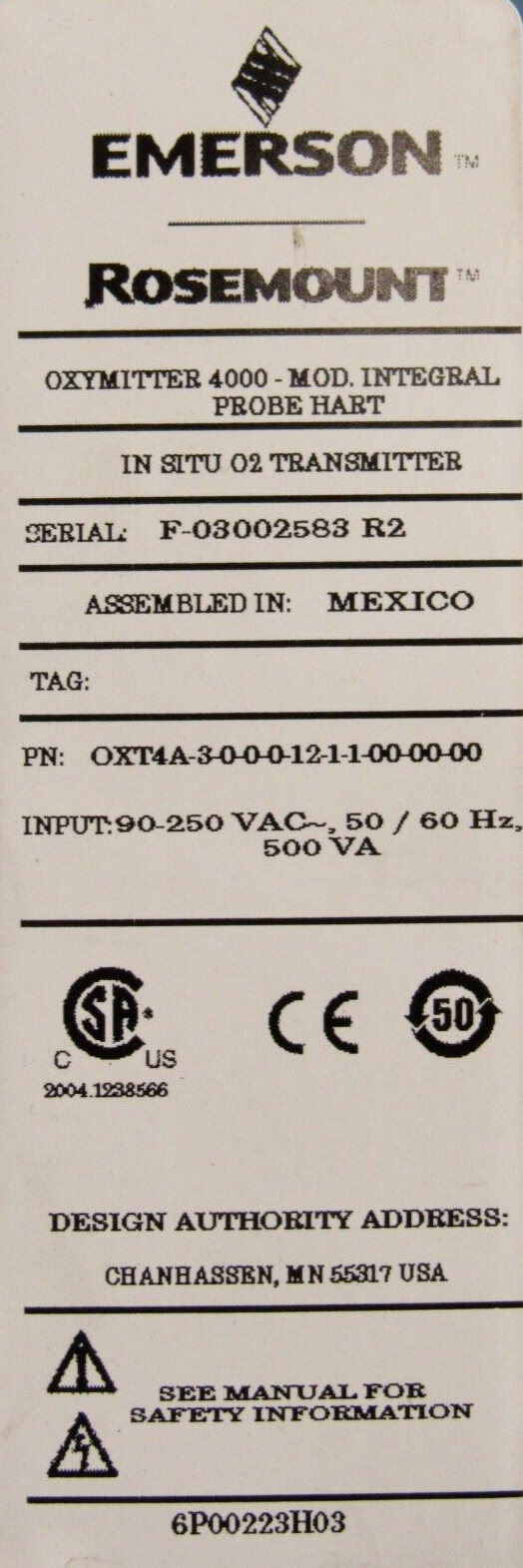 REFURBISHED ROSEMOUNT OXT4A-3-0-0-0-12-1-1-00-00-00 OXYMITTER 4000 OXT4A