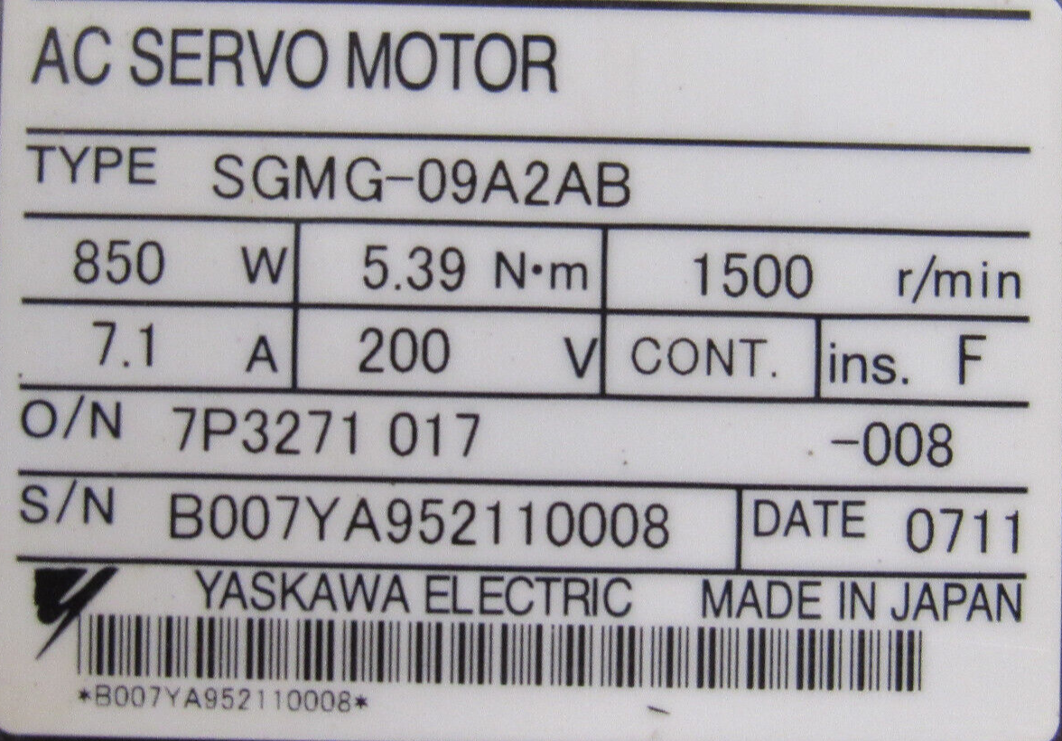 REFURBISHED YASKAWA SGMG-09A2AB SERVO MOTOR SGMG09A2AB
